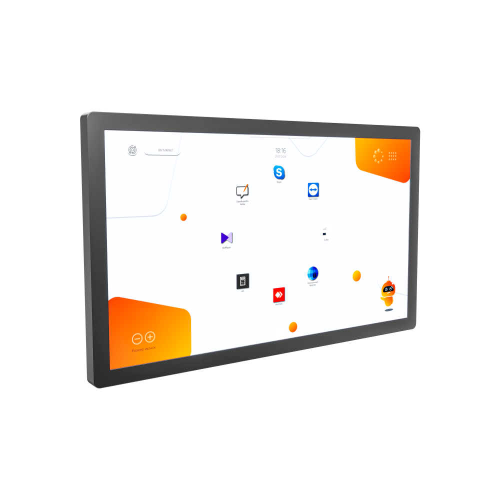 - Стильный дизайн и премиальная сборка — ультратонкие рамки и металлический корпус премиум-класса придают панели современный и статусный вид. Надежная конструкция и качественная сборка рассчитаны на интенсивную эксплуатацию в корпоративной и образовательной среде, подчеркивая высокий статус помещения.