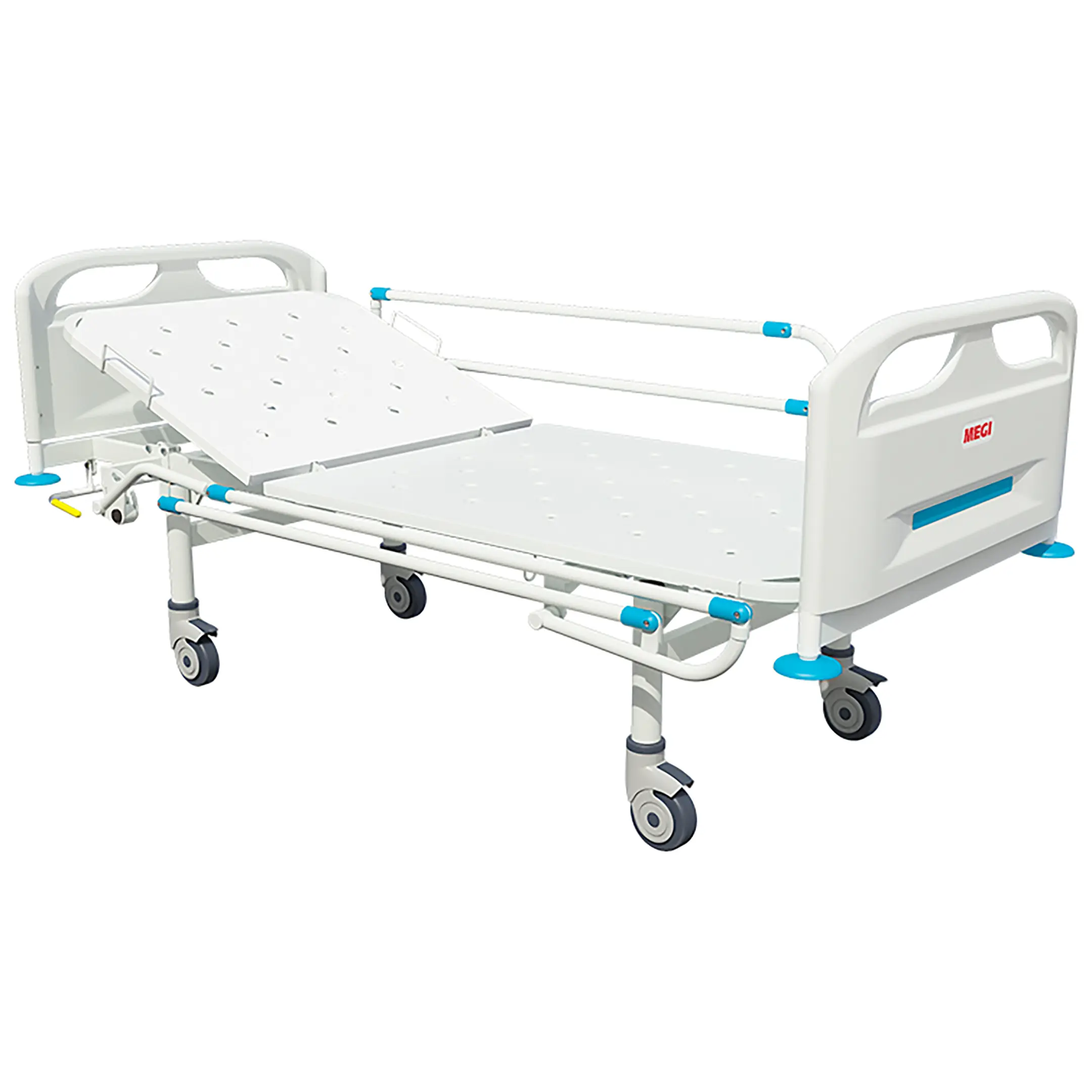 Кровать общебольничная МСК-4101 с регулировкой подголовника на пневмопружинах предназначена для осуществления общебольничного ухода за пациентами во всех отделениях стационаров лечебно-профилактических учреждений.