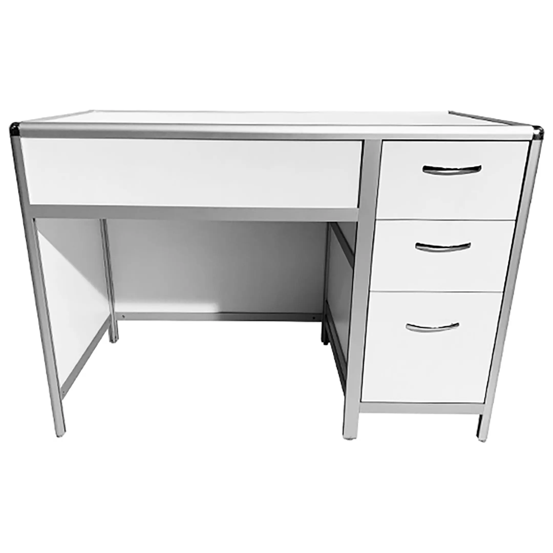 - Удобная система хранения — боковая тумба с тремя выдвижными ящиками для хранения документов и мелких предметов.