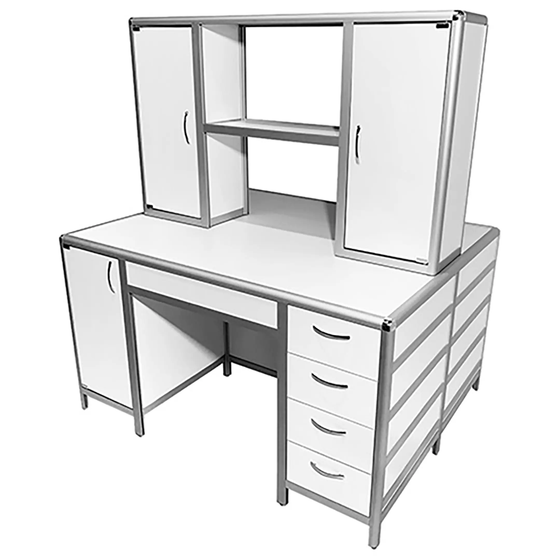 Стол лабораторный островной MED 11.004al с надстройкой (белый)