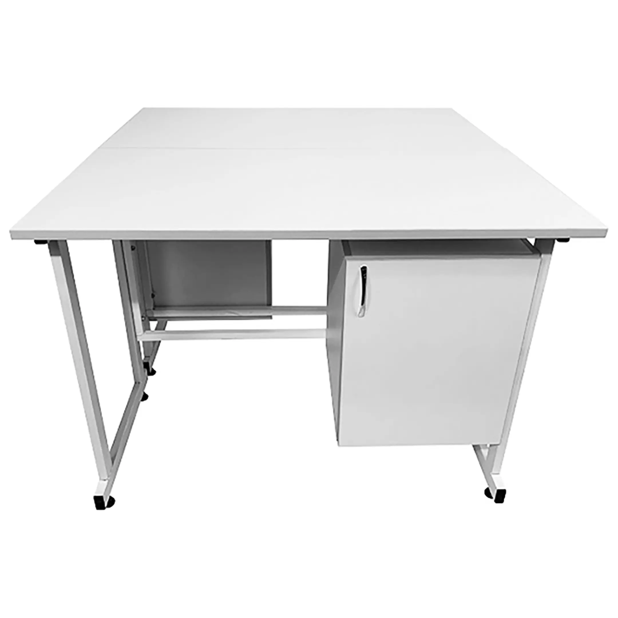 - Два полноценных рабочих места — две столешницы размером 1200х600 мм каждая (общий размер 1200х1200 мм) позволяют одновременно работать двум сотрудникам.