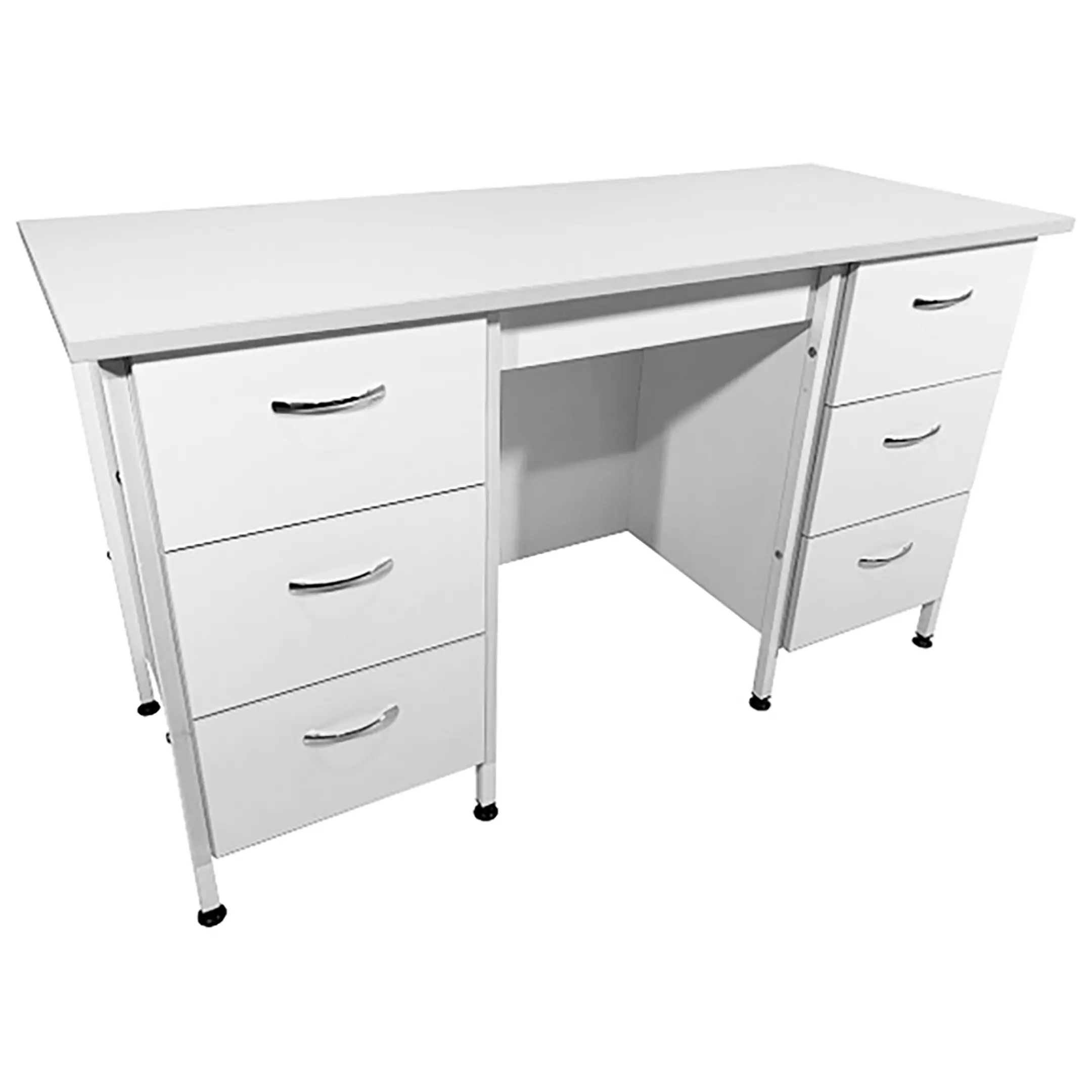 Стол лабораторный СЛ 12.015 (белый) — это идеальное решение для создания удобного и функционального рабочего места сотрудников в лабораториях и медицинских учреждениях. Модель оснащена тумбами с тремя выдвижными ящиками и защитным экраном из ЛДСП. Каркас выполнен из стального профиля, столешница из ЛДСП толщиной 22 мм.
