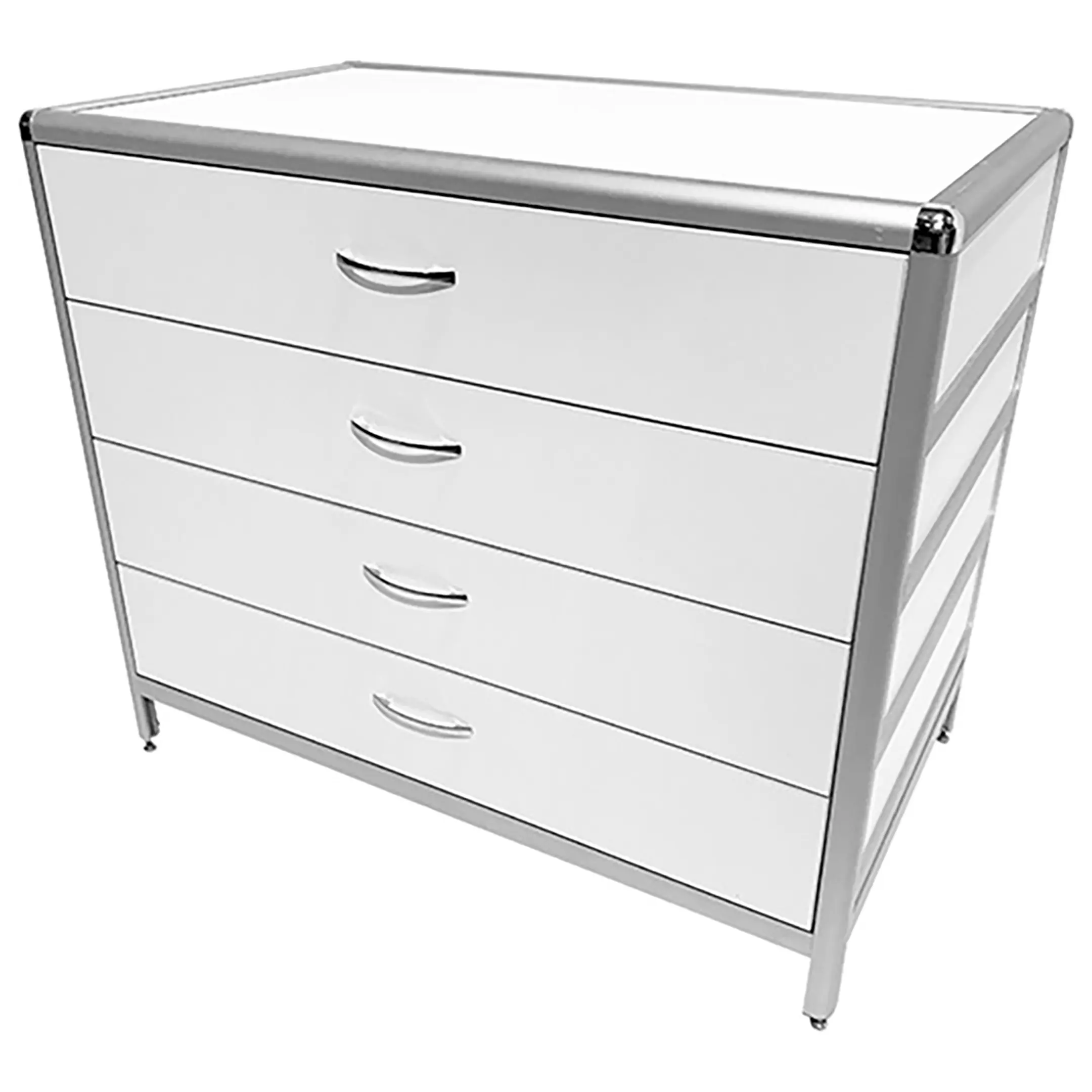Стол-тумба лабораторная MED 12.007al (белый) — это функциональное решение для хранения лабораторного инвентаря, приборов и материалов в лабораториях и медицинских учреждениях. Модель оснащена четырьмя выдвижными ящиками, расположенными под столешницей, размером 434х70х895 мм. Каркас выполнен из алюминиевого профиля, столешница из ЛДСП толщиной 16 мм.