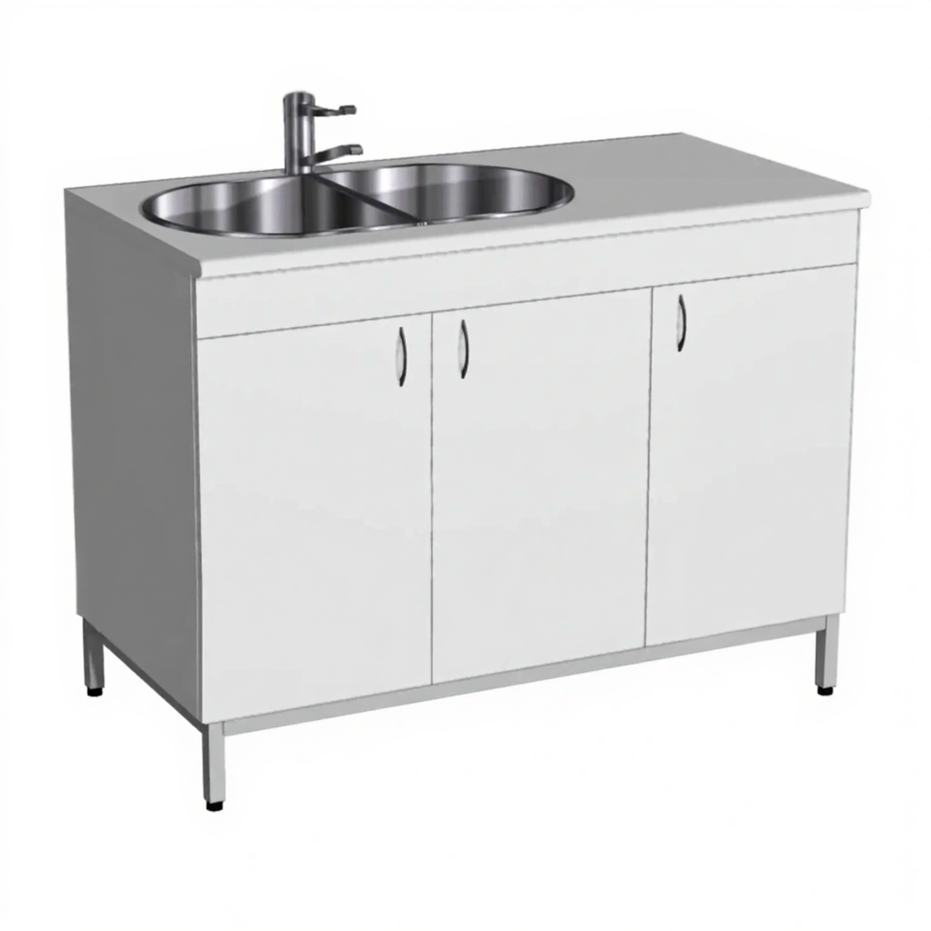 Стол-мойка СТм-106 «Стандарт» 1200 (корпус ЛДСП серый, столешница постформинг серый, каркас серый) — это необходимая составляющая для оснащения рабочей зоны, обеспечивающая удобство и безопасность труда специалистов-исследователей в кабинетах лабораторий. Модель предназначена для мытья и сушки лабораторной посуды. Оснащена двухчашевой врезной мойкой из нержавеющей стали, локтевым смесителем и комбинированной системой хранения: в левой секции две дверки, в правой — дверка и полка. Каркас выполнен из стального профиля, столешница из постформинга 26 мм, корпус из ЛДСтП 16 мм.