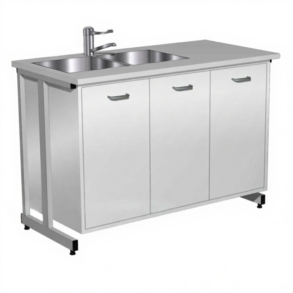 - Удобная система хранения — тумба с тремя дверками для хранения лабораторного инвентаря.