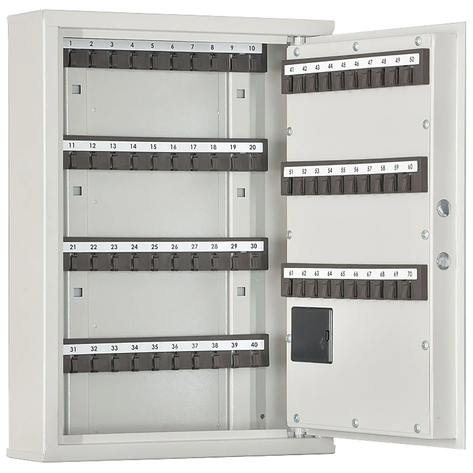 Ключница КЛ-70Э (без брелков) — это электронная система для организованного и защищенного хранения ключей в учреждениях и на предприятиях. Модель с усиленным корпусом и электронным кодовым замком обеспечивает безопасное централизованное хранение до 70 комплектов ключей.