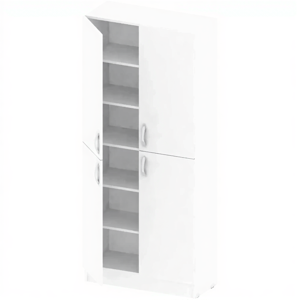 Шкаф 2 секции с полками ОФ-СТ-121 — это вместительное и функциональное решение для хранения документов, книг, одежды и других материалов в образовательных, офисных и административных учреждениях. Модель имеет две секции, каждая с двумя внутренними полками и двумя распашными дверями (всего 4 двери). Изготовлена из качественной ЛДСП толщиной 16 мм и установлена на цоколь.