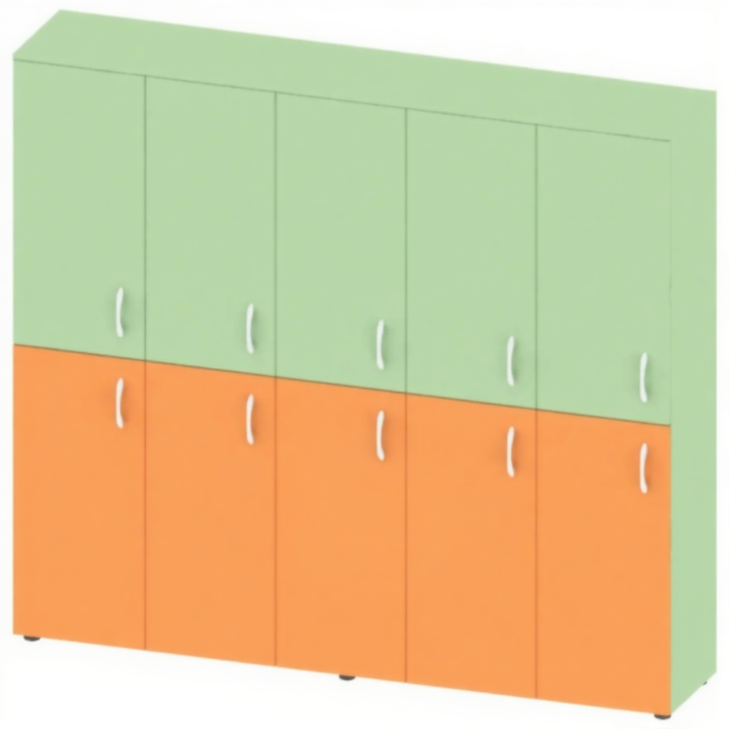 Шкаф детский для одежды двухъярусный на 5 секции МБ-ШК-15 — это функциональное решение для хранения одежды в детских садах, школах и других дошкольных и образовательных учреждениях. Модель имеет 5 секций, каждая из которых разделена по горизонтали на 2 равные ячейки с индивидуальными дверями и полками.