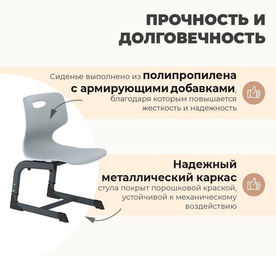 Стул ученический SHT-S-TN21/3-5 — современная и практичная модель с пластиковым сиденьем и спинкой, предназначенная для учеников 3–5 группы роста. Лёгкий, прочный и удобный стул соответствует стандартам ГОСТ и обеспечивает комфортную посадку и правильную осанку ребёнка. Комбинация бежевого сиденья и чёрного муарового каркаса создаёт стильный контраст и гармонично вписывается в интерьер любого учебного класса.