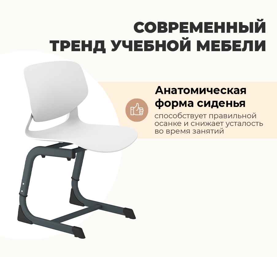 • Современный дизайн — лаконичное сочетание белого и антрацитового оттенков вписывается в любой интерьер учебного помещения.