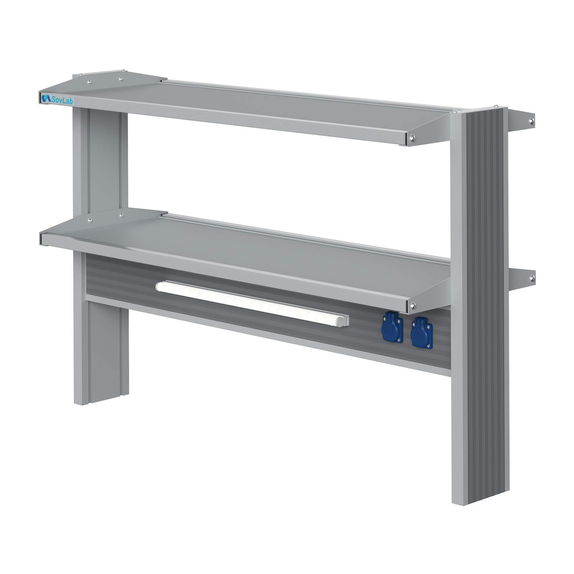 - Компактная и вместительная конструкция — две полки глубиной 408 мм в алюминиевых рамках позволяют разместить лабораторный инвентарь и оборудование.