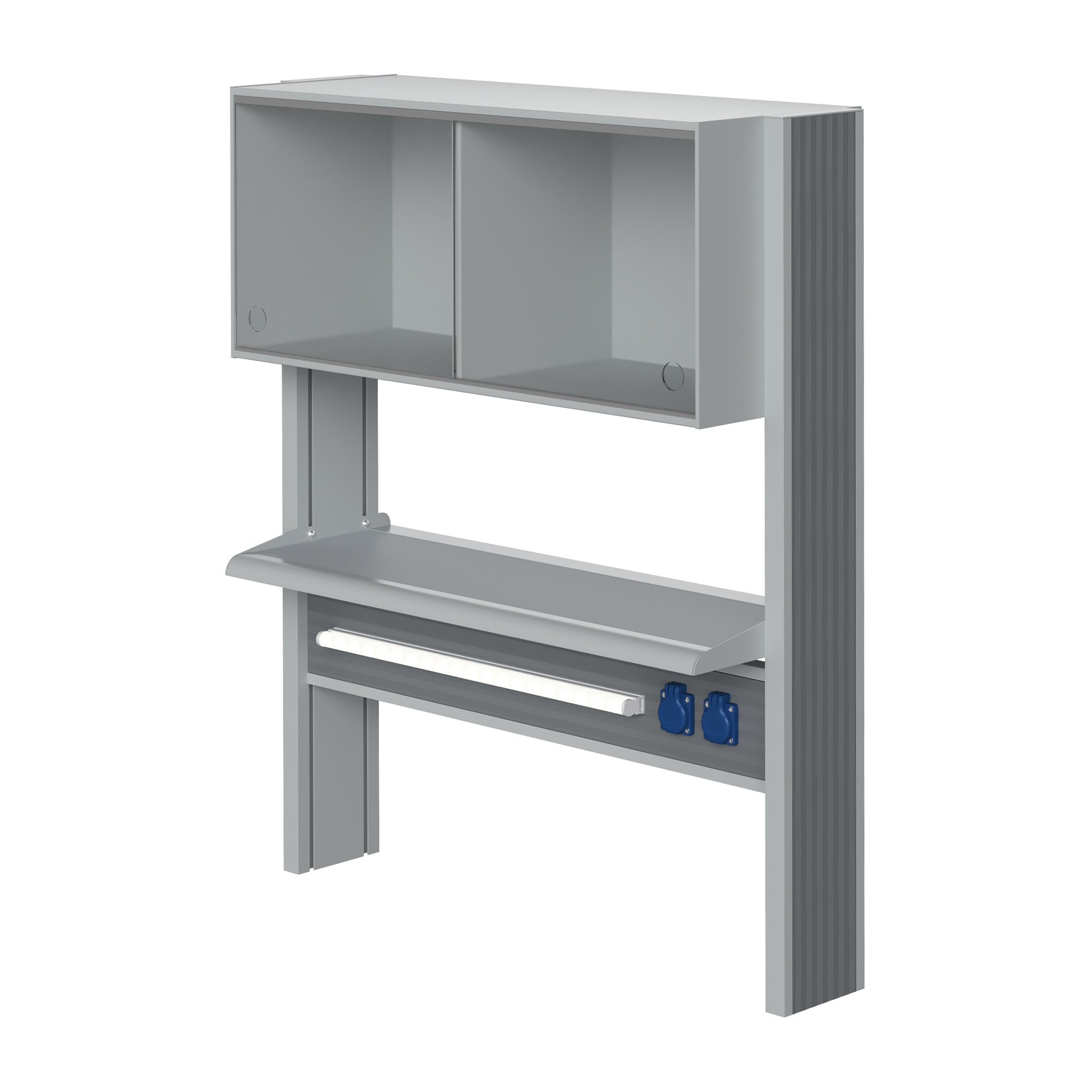 Технологический стеллаж со шкафом 360 мм для пристенного стола Mod. 900 ТСПШ-36 — это специализированное лабораторное оборудование, устанавливаемое на пристенные столы и предназначенное для хранения лабораторной посуды, приборов, реактивов и принадлежностей. Модель оснащена вместительным шкафом с раздвижными стеклянными дверями, полками, блоком электророзеток повышенной защиты и светодиодным светильником для местного освещения рабочей зоны.