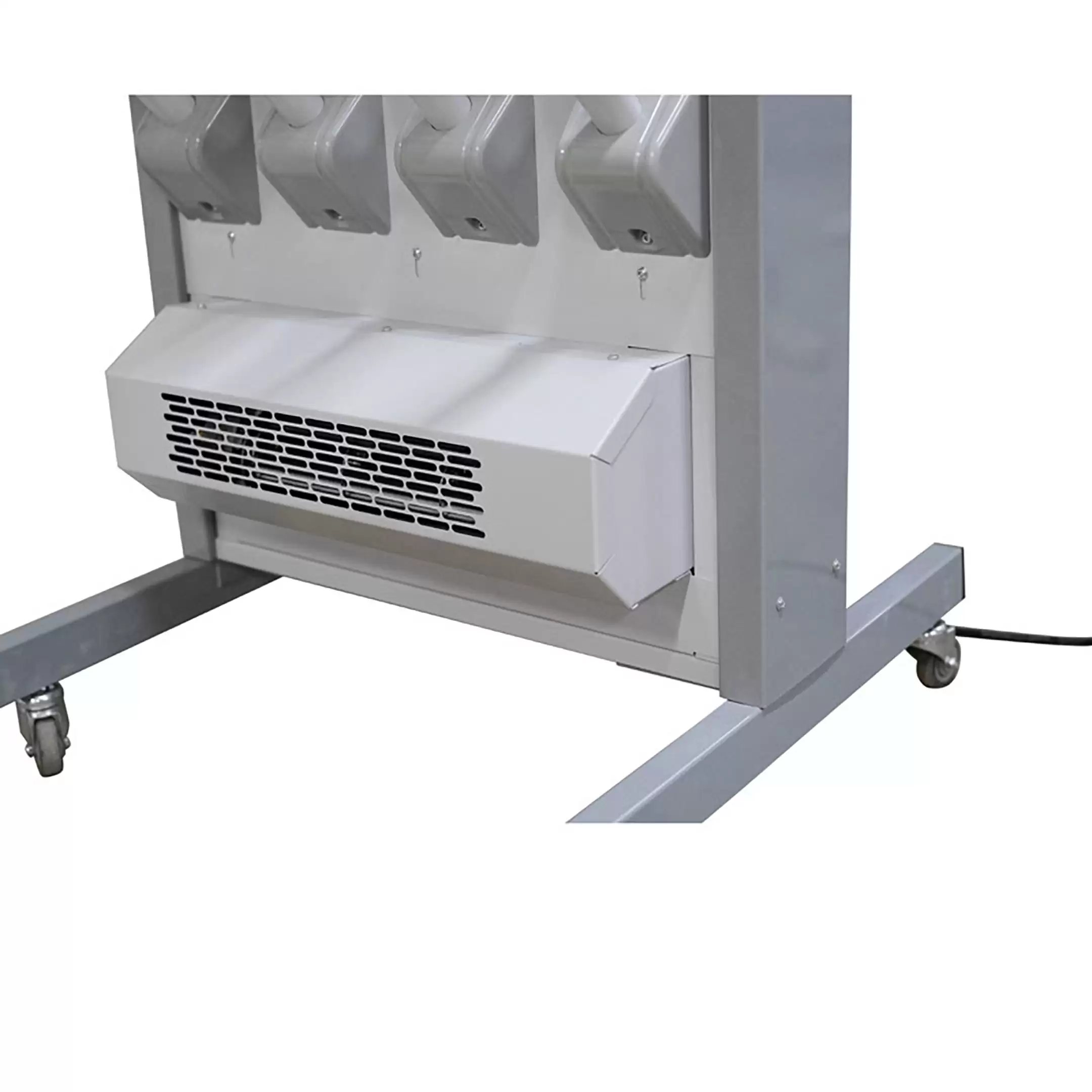 - Компактность и автономность — комплект с подставкой представляет собой готовое к использованию решение, не требующее сложного монтажа. Его можно легко установить в любом удобном месте раздевалки, коридора или подсобного помещения и при необходимости переместить.