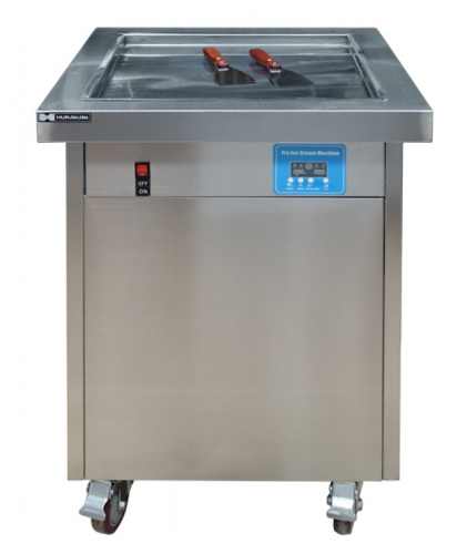 Особенности Размер квадратной поверхности: 500[500 мм. Компрессор LG QKS164PMB (хладагент R410a). 4 колеса, 2 из них с тормозами. Две лопатки в комплекте. Описание Фризер для жареного мороженого Hurakan HKN-FIC50S позволяет легко и просто готовить "жареные" роллы вкуснейшего и диковинного десерта. Они прекрасно подходят для мест праздничного скопления людей, торговых центров и ярмарочных площадок.