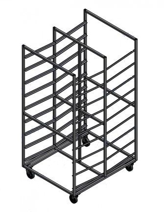 В пекарнях и булочных не обойтись без вспомогательного стеллажа-шпильки СТС-819/907 от российского бренда ТЕХНО-ТТ. Конструкция оборудована полозками уменьшенной ширины для размещения пустых или наполненных хлебных лотков.
