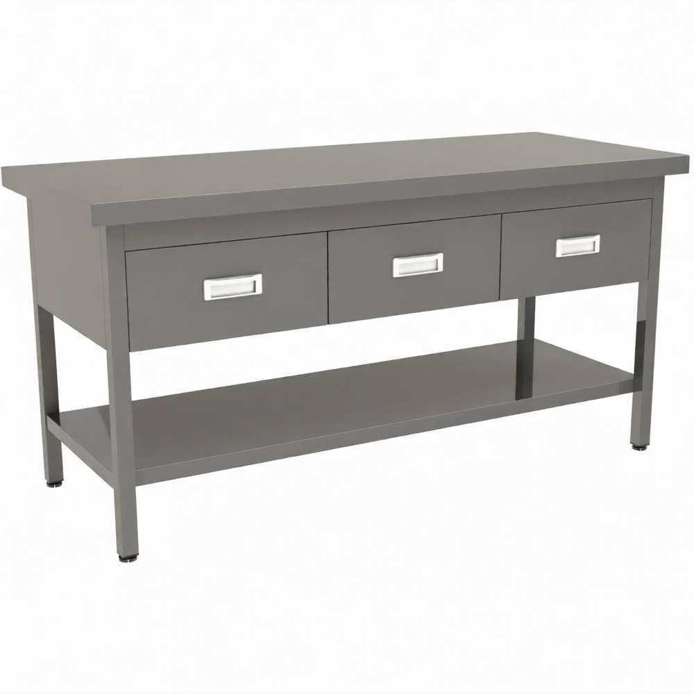 • 3 выдвижных ящика из нержавеющей стали.