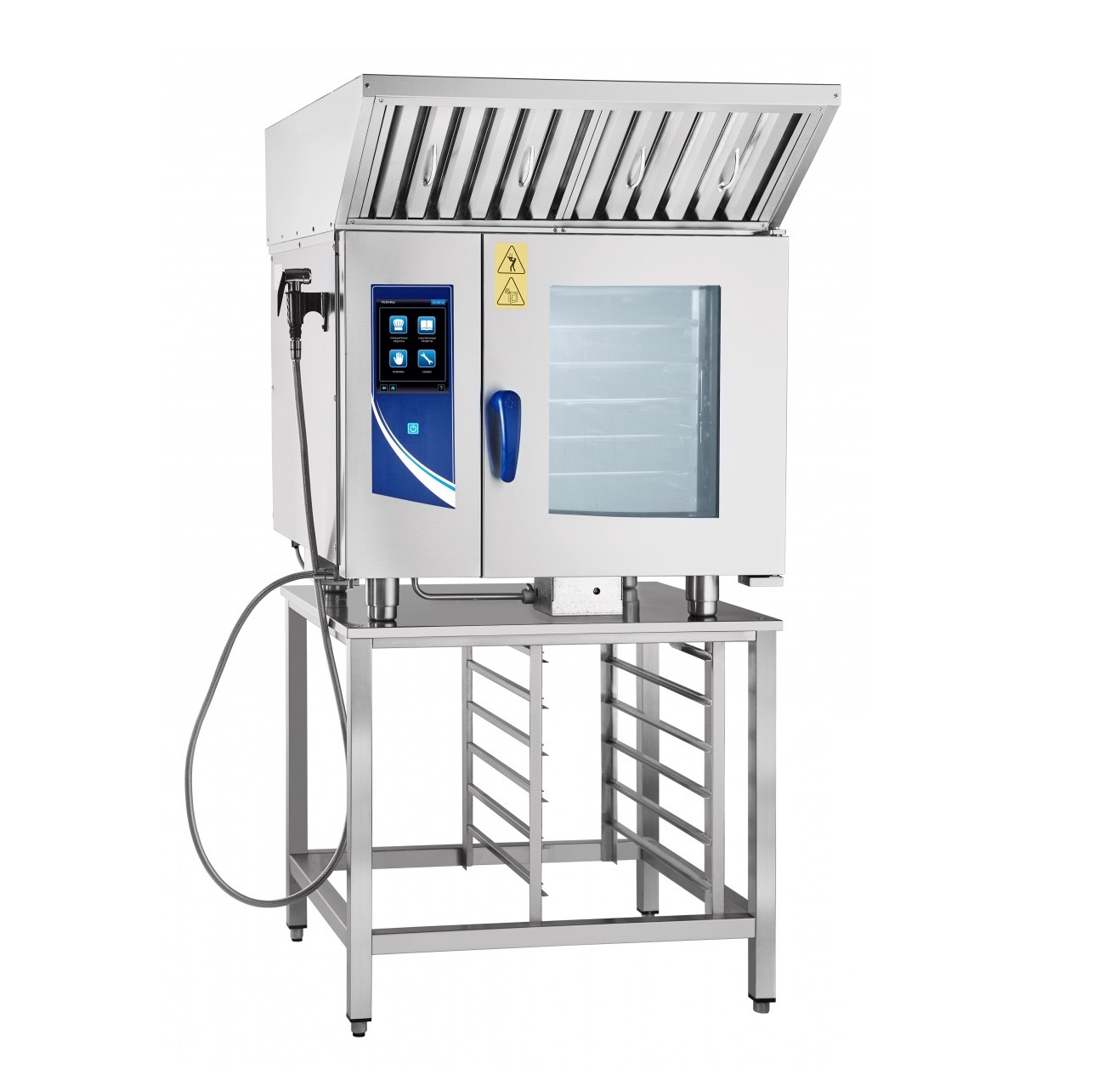 Зонт ЗВВ-800 предназначен для установки на пароконвектоматы типа ПКА-6-1/1 и ПКА-10-1/1 и состоит из трех основных частей: корпуса, съемного лабиринтного фильтра и вентилятора. Подсоединяется к пароконвектомату с помощью кабеля питания (1,8 м с заземлением) и фиксируется с помощью уголков и болтов М5 к задней стенке пароконвектомата.