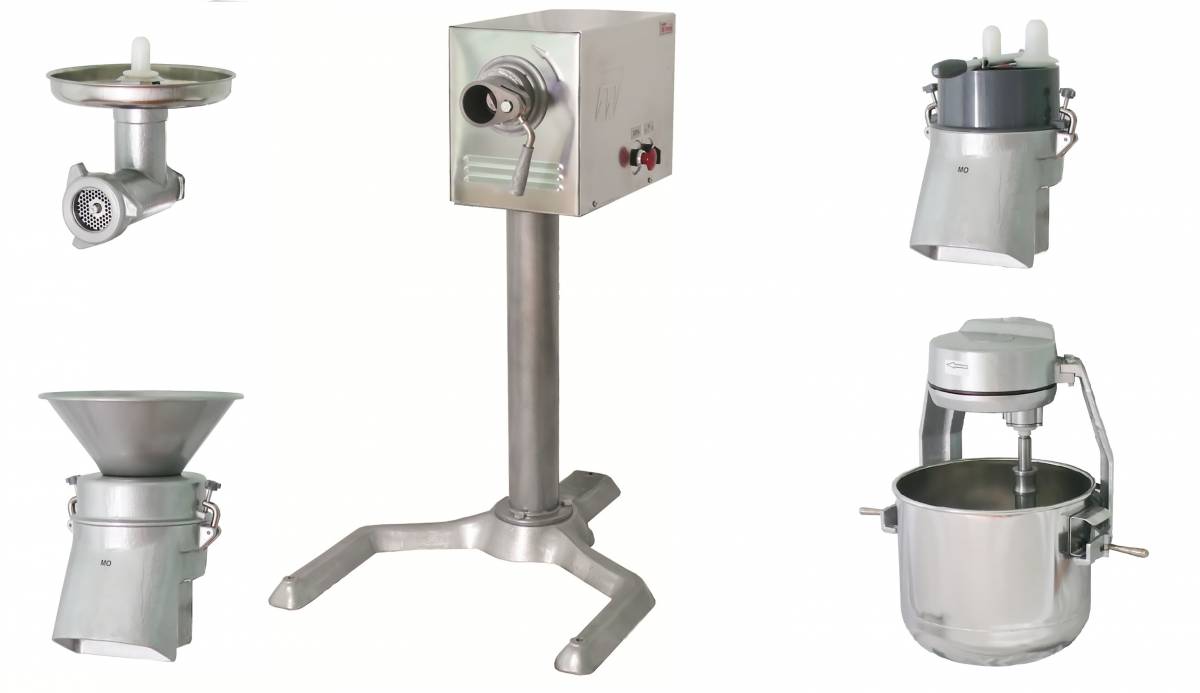 Мясорубка: Производительность техническая – 250 кг/ч; Наружный диаметр решеток – 82 мм; Диаметр отверстий ножевых решеток – 5; 9 мм
