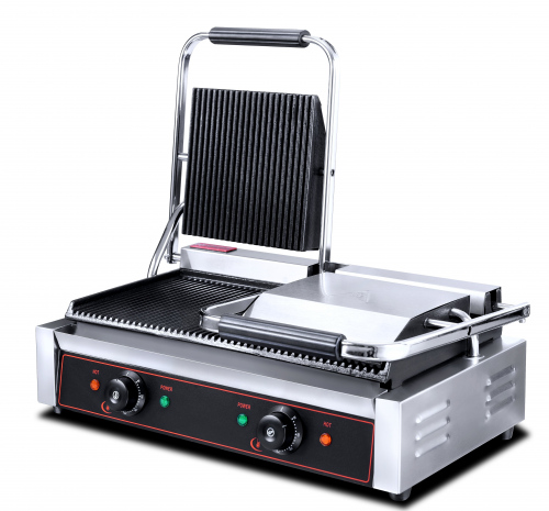 Гриль контактный ROSSO HEG-813 — это профессиональное оборудование для предприятий общественного питания, предназначенное для жарки мяса, рыбы, овощей, приготовления гамбургеров и горячих сэндвичей. Модель оснащена двухсекционной конструкцией с двумя верхними прижимными поверхностями.