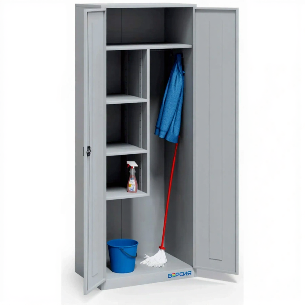 - Удобство использования в школьной инфраструктуре — оптимальные габариты позволяют разместить шкаф в подсобных помещениях, санузлах, гардеробных и других служебных зонах учебных учреждений, обеспечивая при этом достаточный объем для хранения всего необходимого инвентаря для поддержания чистоты в школе.
