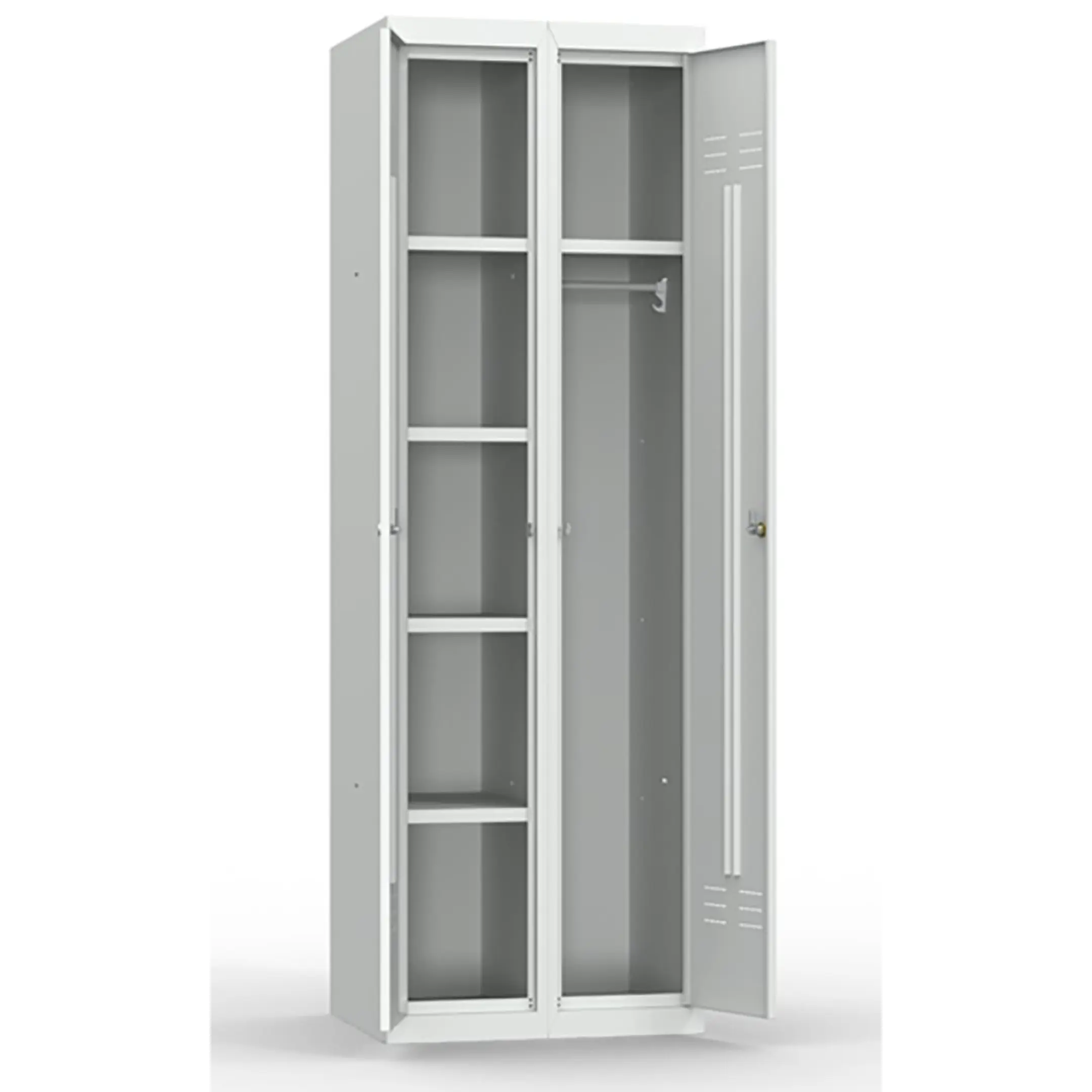 - Универсальность применения в различных сферах — помимо учебных заведений, модель успешно используется в медицинских кабинетах, офисных помещениях, спортивных комплексах и других учреждениях, где требуется компактное и безопасное хранение хозяйственного инвентаря.